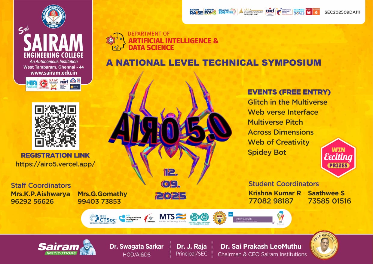 Sairam believes in teamwork. "Together we can" is the slogan imbibed in the working culture to execute every activity of the esteemed institution to make each a resounding success story. Every committee boasts of an inspiring leader and involved members.