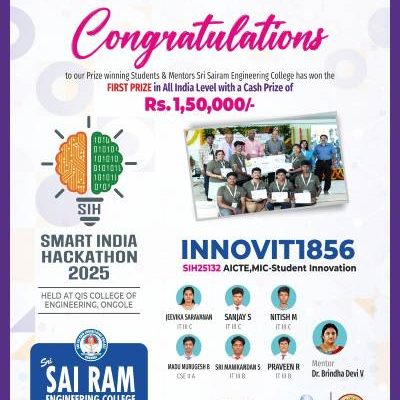Congratulations to Team INNOVIT1856 from Sri Sairam…