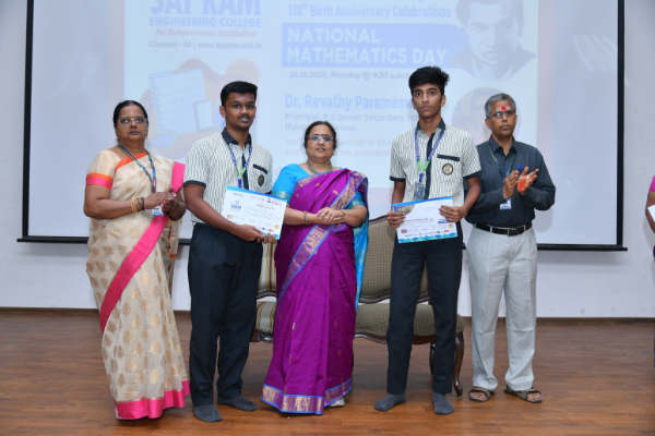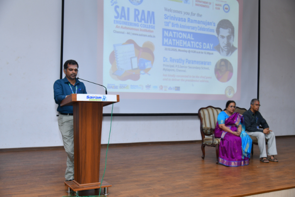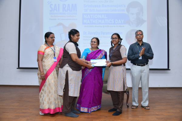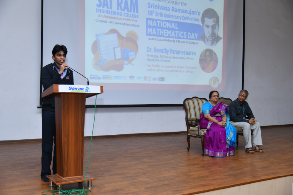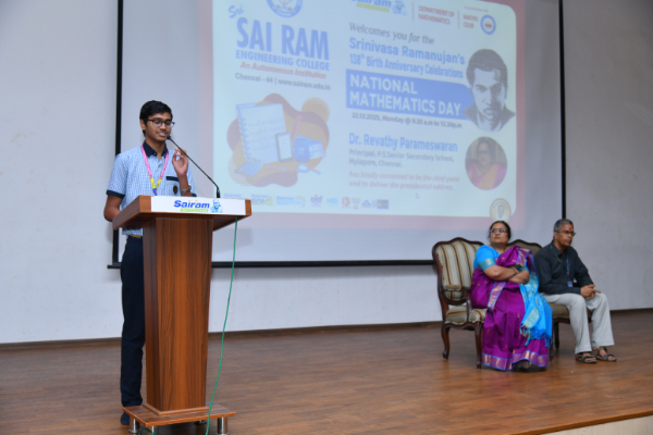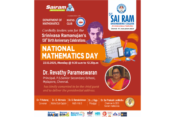The Department of Mathematics & Maths Club, Sri Sairam Engineering College, successfully celebrated National Mathematics Day on 22 December 2025, commemorating the 138th Birth Anniversary of Srinivasa Ramanujan.