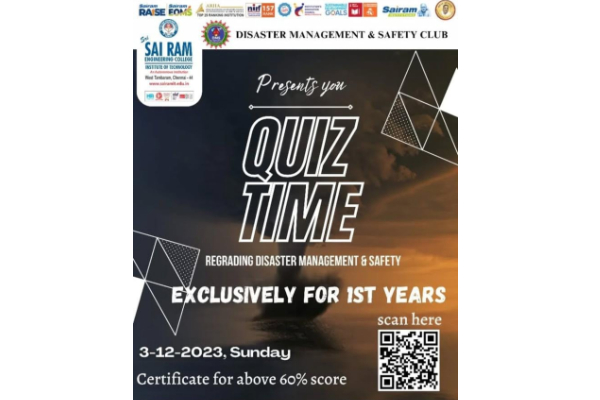 On 03.12.2023, the Disaster Management and Safety (DMS) Club conducted an online disaster awareness quiz competition for first-year students. The quiz focused on various aspects of disaster preparedness, including earthquakes, floods, and emergency response. Students actively participated and demonstrated strong knowledge and interest in disaster awareness. Certificates were awarded to the winners in recognition of their performance. The event helped promote learning, preparedness, and resilience among students.