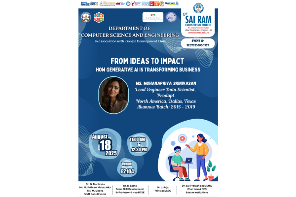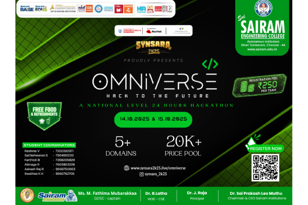 | Ms.Angel Barakka J ORGANIZER | Assistant Professor/ CSBS | angel.csbs@sairam.edu.in | ![]() |