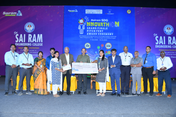Organized by the Sairam Institutions, the event witnessed an overwhelming response with 2556 participants, 829 innovative ideas, spanning 17 UN SDGs across 39 domains and evaluated by 18 expert panels—truly reflecting the vision of fostering mass entrepreneurship.