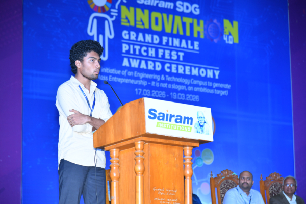 Sairam SDG Innovathon 4.0 was successfully conducted from 17th to 19th March 2026, bringing together innovation, creativity, and entrepreneurial spirit on a remarkable platform.