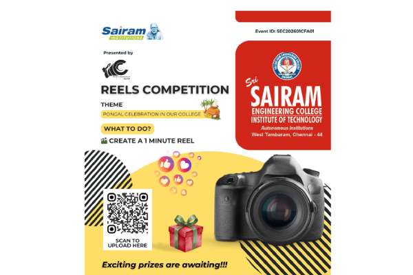 The Reels Competition was successfully conducted at Sri Sairam Engineering College during the Pongal Celebration 2026. Students from different departments actively participated and submitted creative reels based on the given theme. The competition received an overwhelming response, with high-quality entries reflecting the cultural values and festive spirit of Pongal.