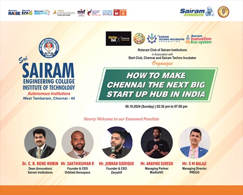 The Rotaract Club of Sri Sairam Engineering College successfully organized an insightful session titled “How to make Chennai the Next Big Start Up Hub in India”. The event brought together inspiring speakers and industry experts who shared their knowledge, experience, and innovative ideas of entrepreneurship and start-up growth.