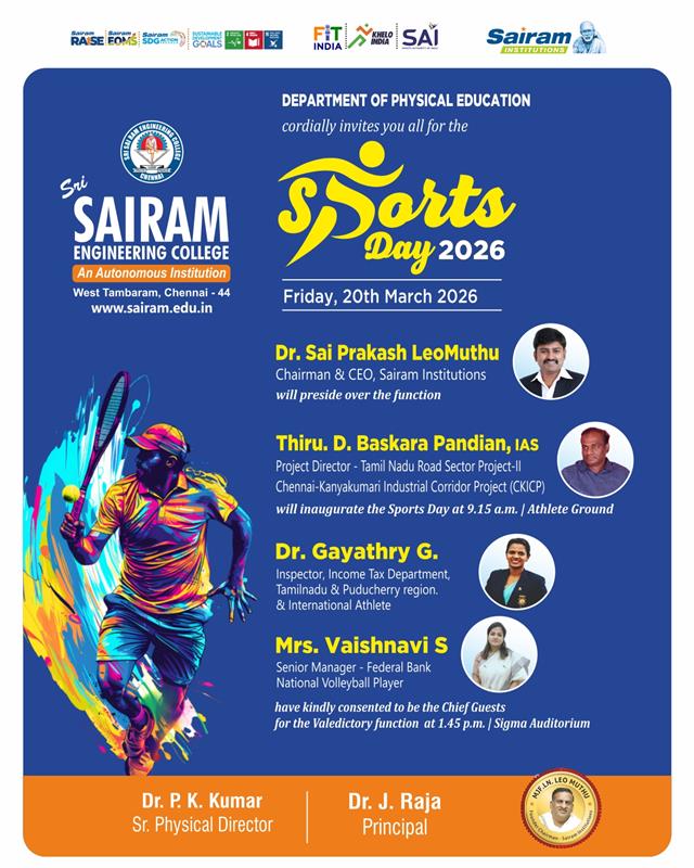 Sri Sairam Engineering College proudly invites you to its Annual Sports Day, a grand celebration of energy, teamwork, and sportsmanship!