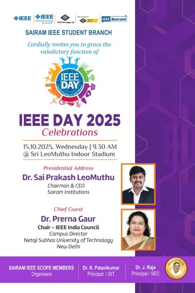 We look forward to your presence and active participation in making IEEE Day 2025 a memorable and meaningful celebration.